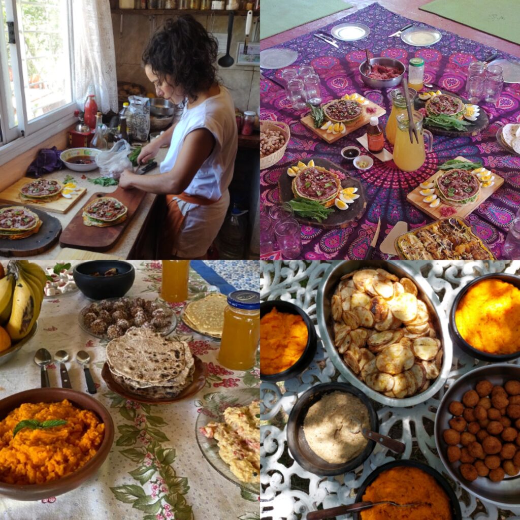 La alimentación es sáttvica, es decir pura y consciente, ovo lácteo vegetariana, preparada en el momento, sin productos refinados, multiprocesados o industrializados. A cargo de la jefa de cocina del ashram, Yogacharini Bar.